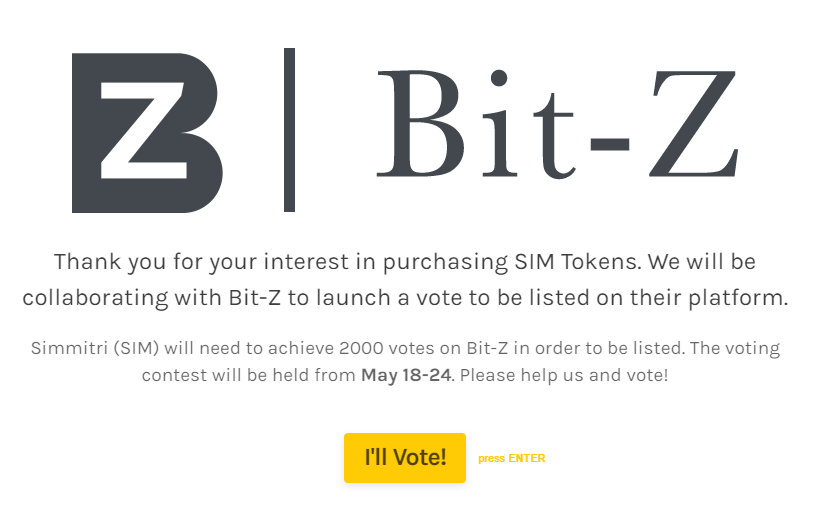 전세계 거래량 9위에 위치해 있는 Bit-Z와 함께 투표를 통해 2000표만을 얻어도 상장이 가능한 것 같습니다.
